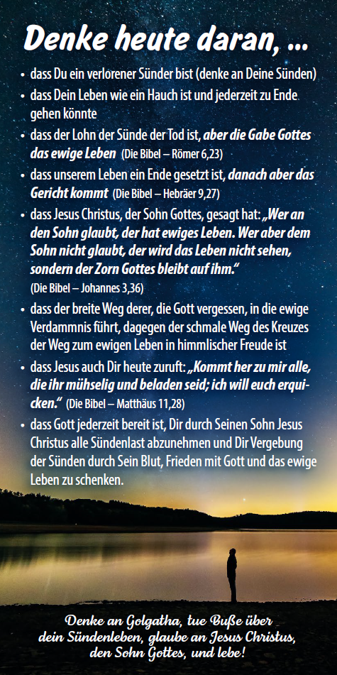 Diese Spruchkarte ist für den evangelistischen Einsatz bestens geeignet und in größeren Stückzahlen bestellbar.